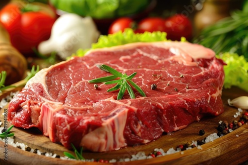 Juicy Angus Boneless Ribeye Steak for Your BBQ. Fresh Cut Grass Fed Beefsteak with Butcher's Knife