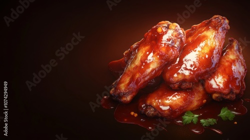 Juicy BBQ chicken wings with visible sauce and moisture,Space for add text