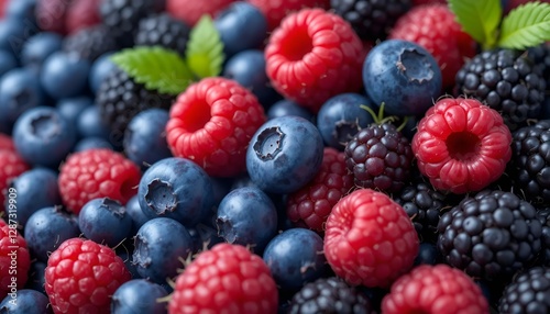 Juicy Berry Cluster A hyper-detailed 3D vector of blueberries, raspberries, and blackberries arranged in a realistic, juicy composition.