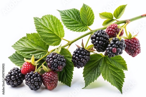 Juicy Blackberries: Fresh Blackberry Branch Isolated on White Background - High-Resolution Stock Photo