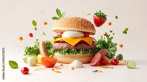 Juicy Burger 3D Render: A Delicious Culinary Illustration AI Generated