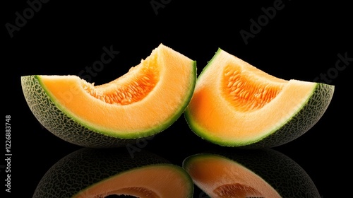 Juicy Cantaloupe Slices on Black Background: A Delicious Summer Treat