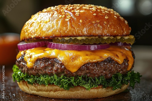 Juicy cheeseburger with fresh toppings and melted cheddar cheese
