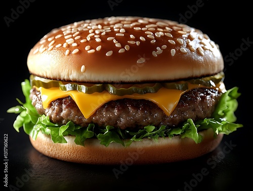 Juicy Cheeseburger with Lettuce, Pickles, and Sesame Seed Bun.