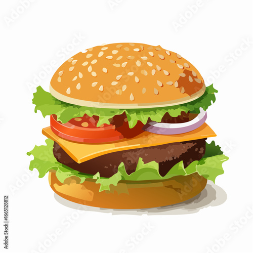 Juicy Cheeseburger with Sesame Seed Bun on White Background