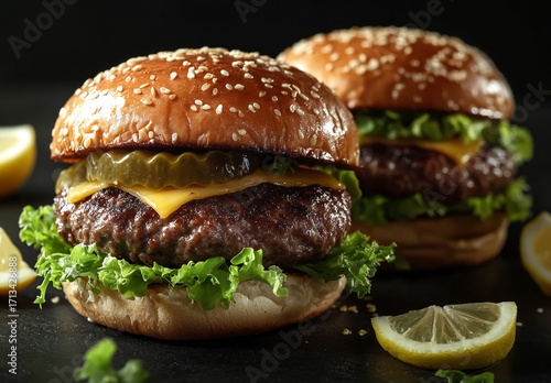 Juicy gourmet burger with melted cheese and fresh lettuce