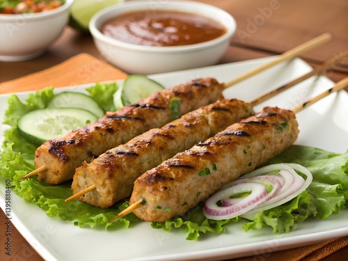 Juicy Grilled Meat Kebabs Perfectly Arranged for Serving