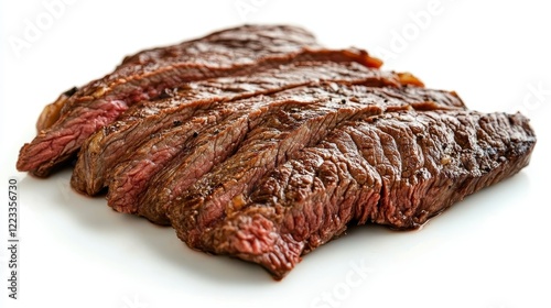 Juicy Grilled Steak Slices on a White Background Ready to Serve