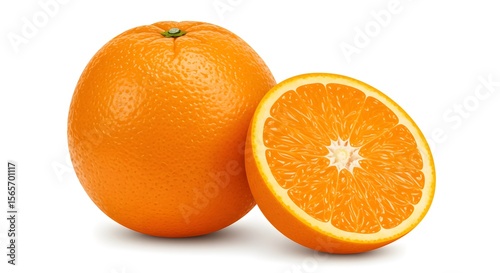 Juicy Orange Fruit Whole and Halved, Fresh Citrus