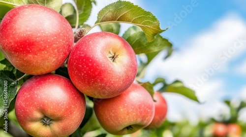 Juicy Red Apples Hanging on a Branch