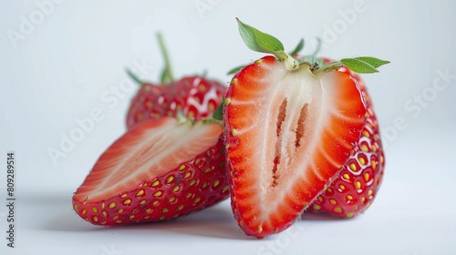 Juicy Strawberry with half sliced isolated on white background. Generative Ai