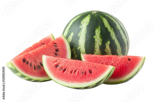 Juicy watermelon slices with a whole watermelon perfect summer refreshment bright red flesh against