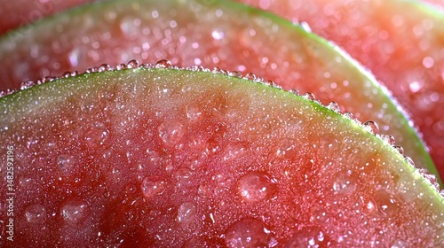 Juicy watermelon slices with water droplets, close-up view