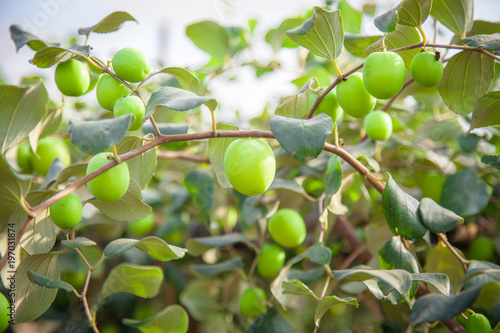 Jujube fruits or monkey apple ( Ziziphus mauritiana ) Fresh from the trees Organic fruits in the farmer's plot garden .