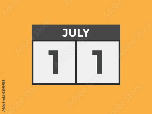 july 11 calendar reminder. 11th july daily calendar icon template. Vector illustration