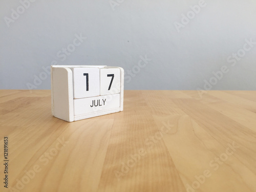 July 17th.July 17 white wooden calendar on vintage wood abstract