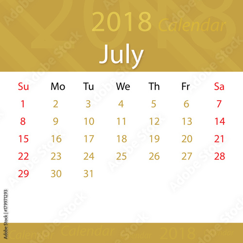 July 2018 calendar popular premium for business