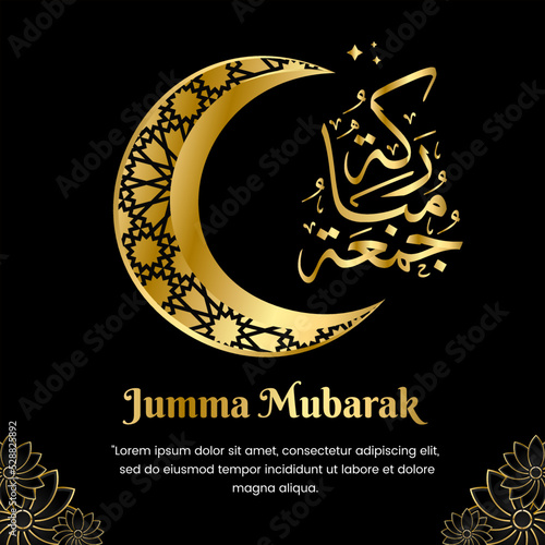 Jumma mubarak black gold arabic calligraphy with a very elegant design. suitable for your post