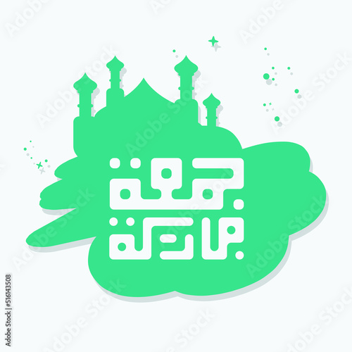 Jummah Mubarak arabic calligraphy with mosque ornament . also can used for card, background, banner, Illustration and cover. the mean is Blessed Friday