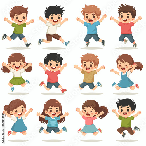 Jumping Children: Cartoon Joy and Energy