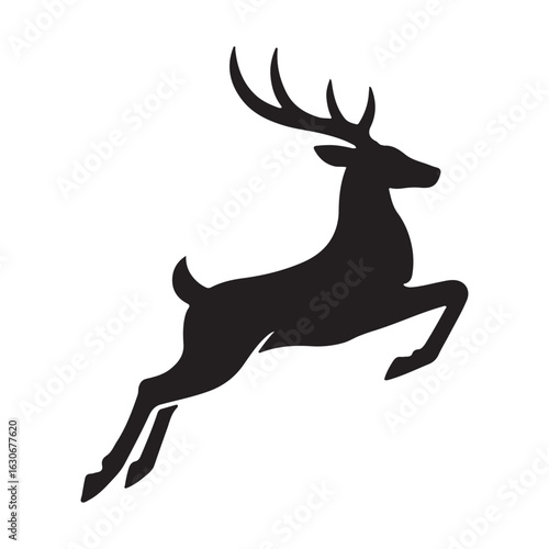Jumping Deer Silhouette Vector – Leaping Stag with Antlers Isolated on White Background