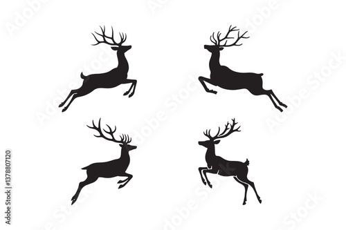 Jumping Deer Silhouette Vector Stag Illustration Wildlife Clipart