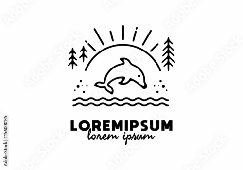 Jumping dolphin under the sun line art