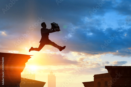 Jumping over precipice, challenge concept.