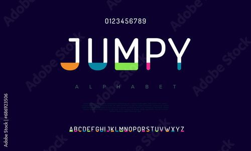 Jumpy creative modern urban alphabet font. Digital abstract moslem, futuristic, fashion, sport, minimal technology typography. Simple numeric vector illustration
