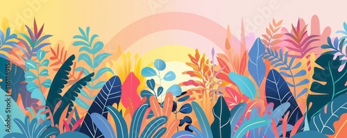 jungle field flat illustration.