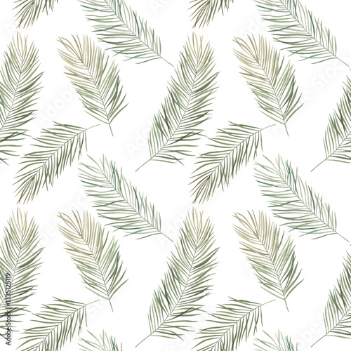 Jungle summer print. Watercolor seamless pattern with palm leaves on white background. Hand drawn illustration