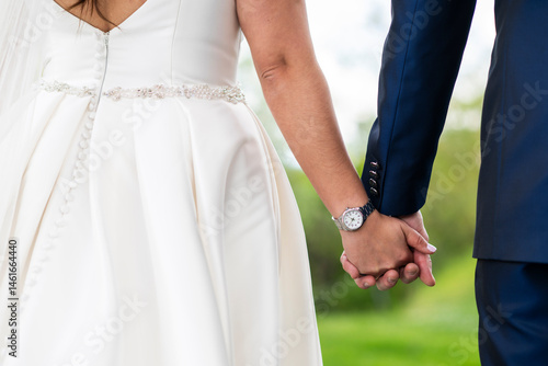 Juntos unidos para siempre con las manos unidas y la hora de la ceremonia