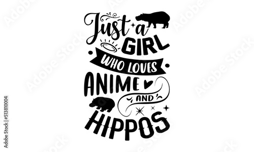 Just A Girl Who Loves Anime And Hippos- Hippo T shirt Design, Hand drawn lettering and calligraphy, Svg Files for Cricut, Instant Download, Illustration for prints on bags, posters