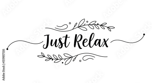 Just relax calligraphy with decorative floral elements on white background