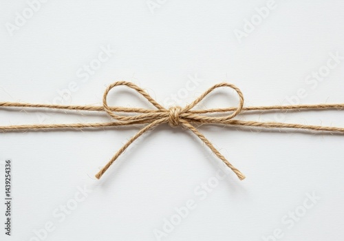 Jute twine bow on white background presents rustic and eco friendly vibe