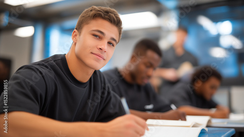 Juvenile Detention Classroom with Teens in Uniforms and Teacher