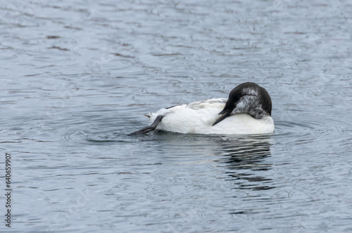 Juvenile guillemot seabird breeding itself in the blue ocean