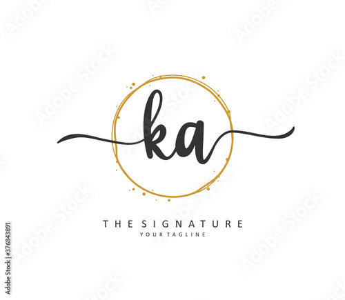 K A KA Initial letter handwriting and signature logo. A concept handwriting initial logo with template element.
