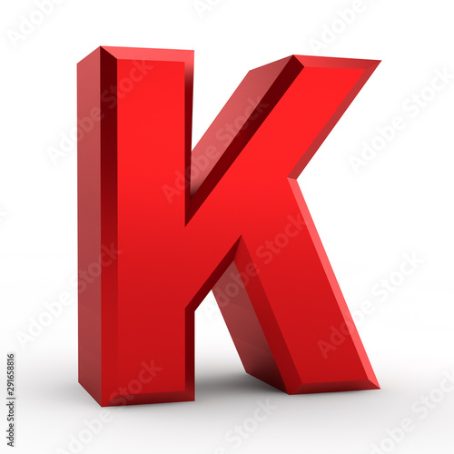 K red alphabet word on white background illustration 3D rendering