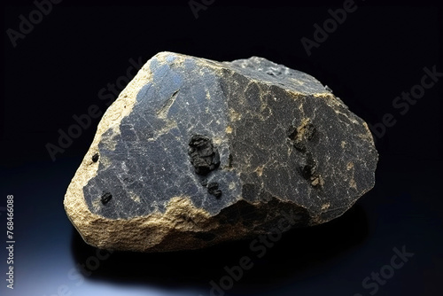 Kaersutite is a rare precious natural stone on a black background. AI generated. Header banner mockup with space.