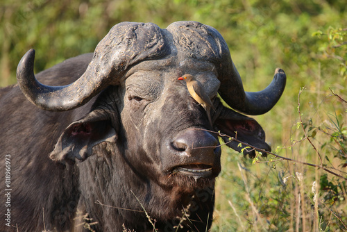 Kaffernbüffel und Rotschnabel-Madenhacker / African buffalo and Red-billed oxpecker / Syncerus caffer et Buphagus erythrorhynchusuphagus erythrorhynchus