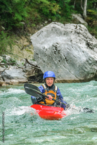 Kajaking auf einem wilden Gebirgsfluß in slowenien