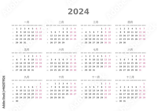 Kalender 2024, chinesisch, Querformat, Montag bis Sonntag