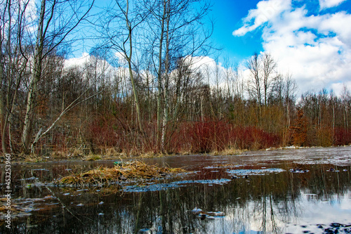 kałuża z drzewami w tle