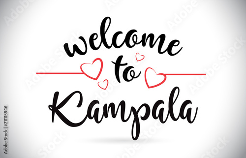 Kampala Welcome To Message Vector Text with Red Love Hearts Illustration.
