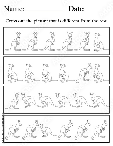 Kangaroo Puzzle. Printable Activity Page for Kids. Educational Resources for School for Kids. Kids Activity Worksheet. Find the Different Object