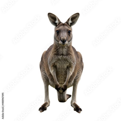 kangaroo standing on transparent background, PNG, isolated kangaroo, animal, marsupial, Australia, wildlife, hopping, strong, powerful legs, tail, jump