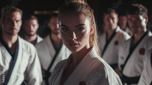 Karate Girl and Team: Focused Determination in Martial Arts