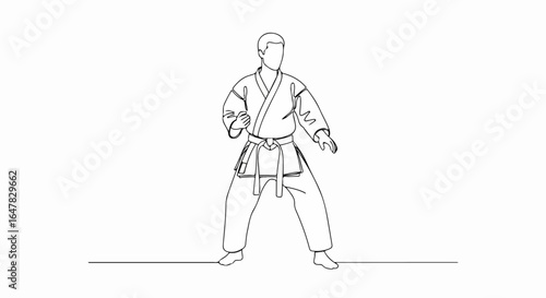 Karate Stance Line Art Illustration of Martial Arts Practitioner
