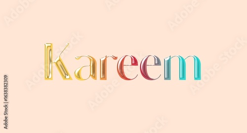 Kareem name. Arabic latin Name illustration. Colorful gradient graphic vector typography with removable background. 3D Separate Arabian name.